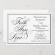 As adapted from 1 Corinthians 13, this elegant Faith, Hope, and Love curly calligraphy script black and white wedding invitation is an ideal choice for the contemporary Christian wedding. See the entire suite of invitation and accessory options at Zazzle store, Graphic Suite.