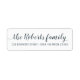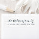 Simple rectangular design featuring family name and return address in modern calligraphy font. Easily personalise with your last name and address.