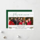 Modern Calligraphy Script 3 Photo Family Photo Collage Feliz Ano Nuevo Happy New Year Card includes Watercolor Christmas Holly Berries - Green Script