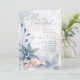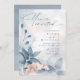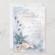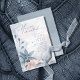 A handwritten, signature font combined with a modern sans serif is used in this floral stationery collection to set a warm and intimate tone for your wedding. The invitation shown here features lush flowers and foliage in shades from dusty blue to soft pink blush against a background of dreamy watercolor paint splashes. Search ID771 to see other pieces and color choices for this set.
