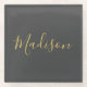 Calligraphy Gold Colour Grey Custom Personal Edit Glass Coaster