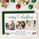 Modern Calligraphy Gold Foil Script 3 Photo Family Photo Collage Merry Christmas Card includes Watercolor Red Holly Berries - Your Photos in Gold Foil Frames with a Forest Green Back