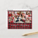 Modern Calligraphy Heart Script Merry Christmas 5 Photo Holiday Postcard - Red Plaid