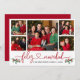 Modern Calligraphy Heart Script 5 Photo Family Photo Collage Feliz Navidad Merry Christmas Card includes Watercolor Christmas Red Holly Berries