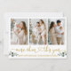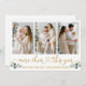 Modern Calligraphy Script 3 Photo Family Photo Collage More Cheer This Year Holiday Card includes Watercolor Eucalyptus Leaves. Gold Script.