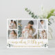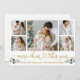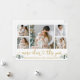 Modern Calligraphy Script 5 Photo Family Photo Collage More Cheer This Year Holiday Card includes Watercolor Eucalyptus Leaves. Gold Script.