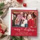 Modern Calligraphy Heart Script Merry Christmas Photo Holiday Card - Red Background