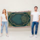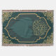 Color Palette: Dominated by teal/deep green for the background and yellow/gold for the border and calligraphy.