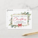 Elegant Watercolor Winter Greenery with Modern Calligraphy Ink Pen Script - Have Yourself A Merry Little Christmas Postcard - includes eucalyptus leaves and red holly berries. Red Bow Ribbon.