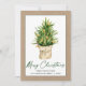 Modern Elegant Calligraphy Ink Script Watercolor Tree Kraft Merry Christmas Card - Green Script