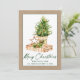 Modern Elegant Calligraphy Ink Script Watercolor Tree Kraft Merry Christmas Card - Green Script