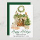 Modern Elegant Calligraphy Ink Script Watercolor Pine Tree and Holiday Hearth Happy Holidays Card - Green Script