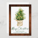 Modern Elegant Calligraphy Ink Script Watercolor Tree Kraft Merry Christmas Card - Rustic Country Wood - Green Script