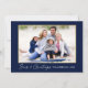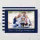 Modern Minimalist Elegance Calligraphy Ink Pen Handwritten Script Seas & Greetings Photo Gold Frame Holiday Card - Navy Blue & White Stripes