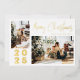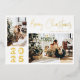 Calligraphy Merry Christmas Two Family Photo Gold Foil Holiday Card