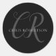 Calligraphy Monogram Name Black Grey Custom Gift Classic Round Sticker
