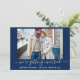 Modern Trendy Calligraphy Script Couple Photo We're Getting Married Save The Date Engagement Announcement Card - Navy Blue