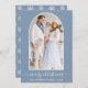 Calligraphy Photo Arch Snowflakes Dusty Blue Holiday Card