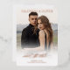 This Calligraphy Photo Wedding Save The Date Card features an elegant design with photos and foil finishes It's simple yet sophisticated design is perfect for couples who appreciate understated style. With its high-quality materials and attention to detail, this card is sure to make a lasting impression on your guests.