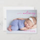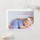 Celebrate the arrival of your little one with this calligraphy pink welcoming baby announcement card. The design features refined handwritten typography, a baby photo and a clean layout, which captures the beauty of simplicity. The flowing script headline “welcoming” adds a gentle, heartfelt touch that's perfect for announcing your newborn’s name, birth date, weight, and time. This card complements any aesthetic from modern chic to classic understated elegance.