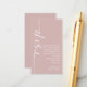 Mini size Modern Calligraphy QR Code Dusty Rose Pink Wedding RSVP is in a set elegant calligraphy rotated and to the left, with your message to the right. Easily personalise the rest of the text to your own details and replace the sample QR code on the back with your own by simply replacing the sample code url with the url of your own wedding website.
