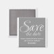 Calligraphy Save the Date Magnet in grey and white with a sophisticated typography design. This elegant and chic save the date magnet is easy to customise with your wedding details. For more customisation options, click on the Customise It button.