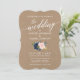 Calligraphy Script Blue Pink Floral Wedding Kraft Invitation