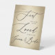 Calligraphy Script Gold Pick A Seat Wedding Pedestal Sign