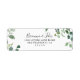 This calligraphy script green foliage return address label is perfect for a modern wedding. The design features watercolor hand-drawn elegant botanical eucalyptus branches and leaves, arranged in beautiful bouquets and geometric patterns.