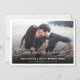 This modern save the date magnetic card features a minimalist design layout with classy and classic calligraphy script text. A simple white frame highlights your favourite photo. You can easily personalise the card with your names, wedding date and details.