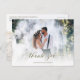 This design features a modern simple elegant calligraphy script, a minimalist minimal two 2 photo, a wedding photo photography couple, a basic clean contemporary template, an elegant typography script text font, a photo wedding thank you cards, a custom customised personalised design, a golden handwritten lettering font, a creative simplistic elegant script, a calligraphy wedding thank you budget-friendly vellum overlay effect postcards.