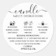calligraphy Script fonts and candle safety icons are used on this minimalist candle warning label. The most crucial candle warning information is included on this black and white safety instructions candle label. Your candle container design will come together beautifully with the addition of this round safety label. Important! Verify that all of the content complies with local laws by checking it twice. Only serving as a guide, the placeholder text.