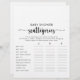 This calligraphy simple baby shower scattegories game is a perfect a fun activity for a minimalist baby shower. The design features a beautiful calligraphy font in a white background to embellish your event.