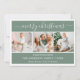 Modern Trendy Calligraphy Script 3 Photo Family Photo Collage Merry Christmas Card - Sage Green with Snowflakes back