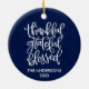Calligraphy Thankful Grateful Blessed Red Buffalo Plaid Ornament - Family Name and Year - Winter Navy Blue