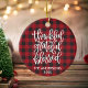 Calligraphy Thankful Grateful Blessed Red Plaid Ceramic Tree Decoration