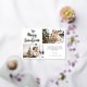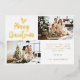 A modern and elegant Christmas holiday card featuring two lovely family photos you can personalise. A gold foil calligraphy lettering of "Merry Christmas" on the left side with hand-drawn poinsettia leaf in gold foil placed on top of the lettering. Write your warm greetings and family name on the bottom right of the card. At the back is designed with slant grey stripes in dark green background.