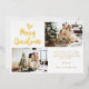 Calligraphy Two Photo Striped Collage Christmas Foil Holiday Card