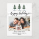 Modern Elegant Calligraphy Script, Watercolor Pine Trees, Happy Holidays Family Photo Postcard
