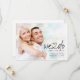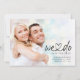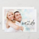 Modern and handwritten calligraphy "we do" with connected heart, your favourite photo save the date card