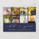Calligraphy What a Year Navy Blue Photo Collage Holiday Postcard