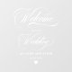 Simple white minimalist elegant calligraphy script wedding welcome sign, stick it on a clear surface, glass, mirror...
