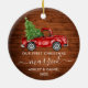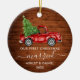 Modern Trendy Calligraphy Script Our First Christmas Married Ornament includes Watercolor Vintage Red Truck with Christmas Tree - Rustic Country Wood Print