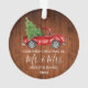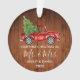 Modern Calligraphy Script Our First Christmas as Mr. and Mrs. - Watercolor Vintage Red Truck Ornament - Rustic Country Wood Print