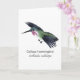 An illustration of a calliope hummingbird done with coloured pencil. The common and Latin names are featured below the bird.