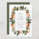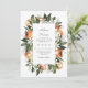 This wedding invitation features a watercolor orange blossom frame and simple script font.