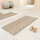 Destei's minimalist design of a modern layout in lovely beige color creating a peaceful setting for your practice. Two thick wavy lines in a slightly lighter tone add subtle movement along one edge, while the rest of the mat is left open to create a sense of space and clarity.