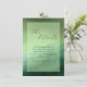 This wedding enclosure card features a serene gradient background transitioning from soft mint to deep forest green, creating a tranquil and natural ambiance. The minimalist design emphasizes clean lines and negative space, with elegant script typography for "the details" at the top and classic serif font for additional information below. The modern aesthetic is enhanced by subtle texture overlays, giving depth to the organic color palette. Perfect for conveying essential event details, this card exudes sophistication and understated elegance, making it an ideal choice for formal wedding announcements.