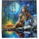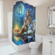 Calm night by river with Native and wolf Shower Curtain