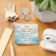 Custom message or quote keychain with your message printed on an oil painting depicting a sunrise at sea with clouds and calm waves.